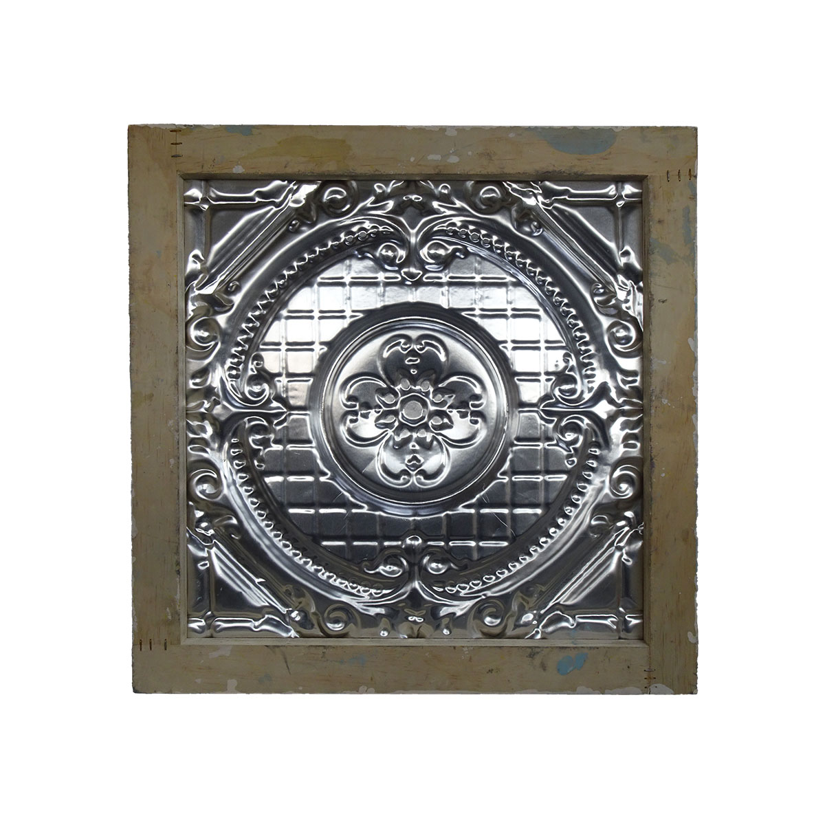 oldegoodthingsは古い建物、文化遺物を探し求めその天井ごと購入し、 ブリキの天井を支える壁から慎重に剥ぎとり、その素材をそれぞれのサイズに合った木製のフレームに取り付け特殊なコーティングを施し、最後に鏡を取り付けることで捨てられるはずの廃材から美しい一品が生まれるのです。