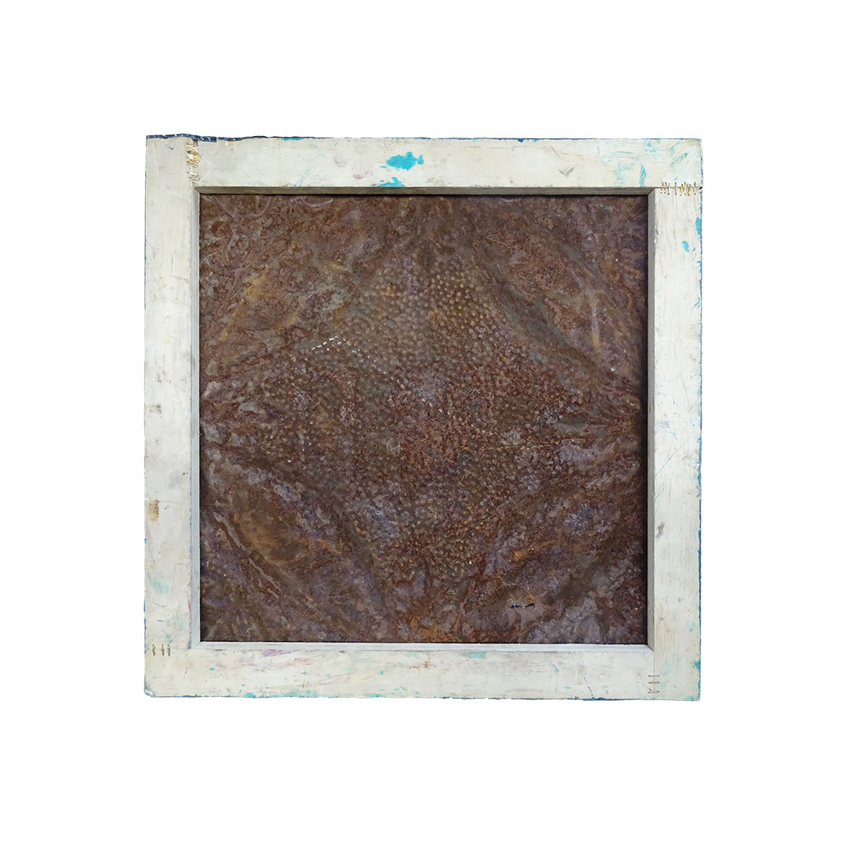 oldegoodthingsは古い建物、文化遺物を探し求めその天井ごと購入し、 ブリキの天井を支える壁から慎重に剥ぎとり、その素材をそれぞれのサイズに合った木製のフレームに取り付け特殊なコーティングを施し、最後に鏡を取り付けることで捨てられるはずの廃材から美しい一品が生まれるのです。