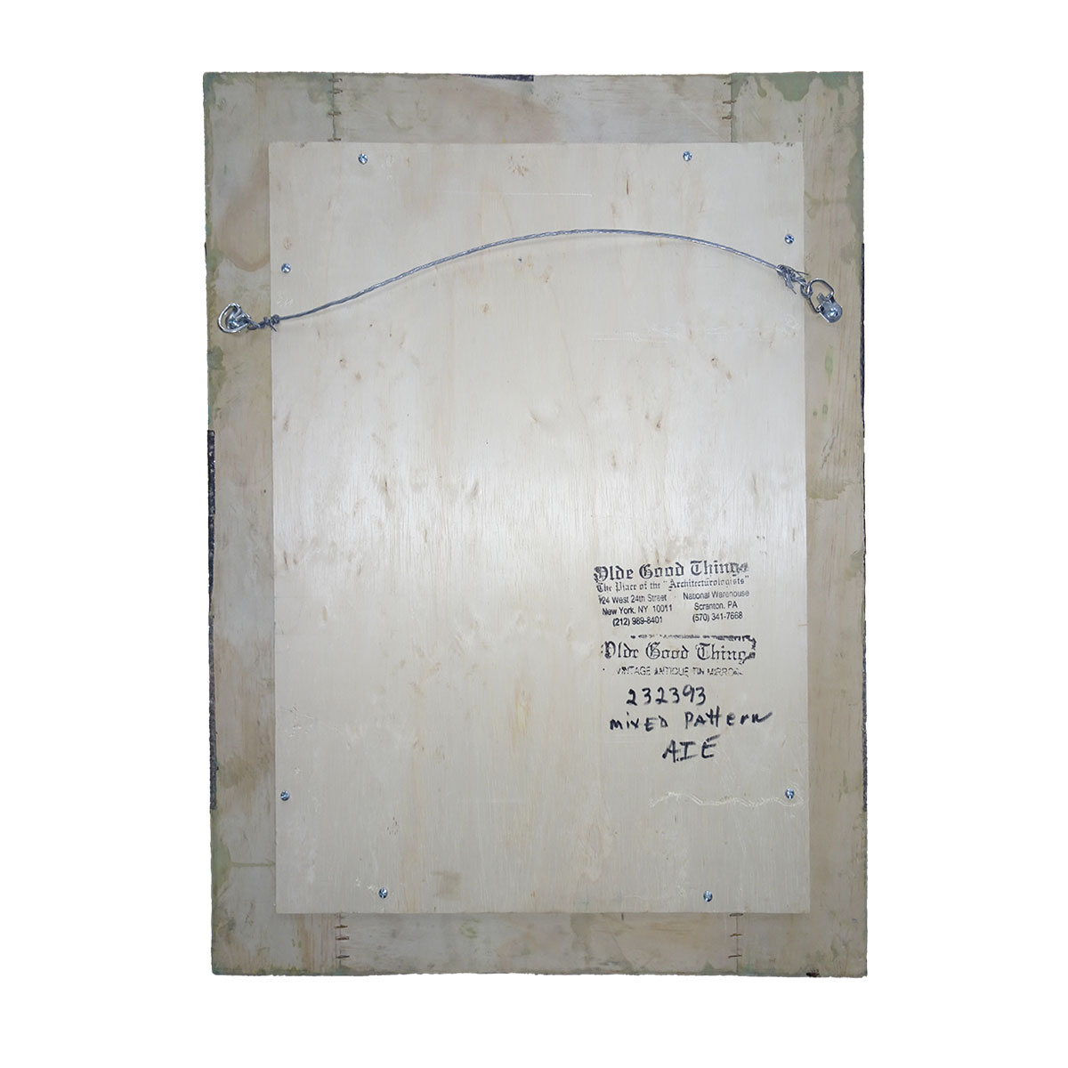 oldegoodthingsは古い建物、文化遺物を探し求めその天井ごと購入し、 ブリキの天井を支える壁から慎重に剥ぎとり、その素材をそれぞれのサイズに合った木製のフレームに取り付け特殊なコーティングを施し、最後に鏡を取り付けることで捨てられるはずの廃材から美しい一品が生まれるのです。