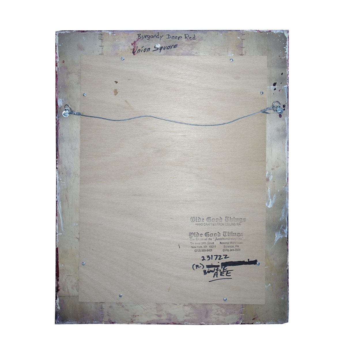 oldegoodthingsは古い建物、文化遺物を探し求めその天井ごと購入し、 ブリキの天井を支える壁から慎重に剥ぎとり、その素材をそれぞれのサイズに合った木製のフレームに取り付け特殊なコーティングを施し、最後に鏡を取り付けることで捨てられるはずの廃材から美しい一品が生まれるのです。